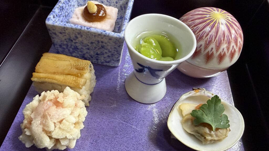 子どもにはお子様会席が出てきて盛り付けがとても可愛らしく、運ばれてきた瞬間から子どもも興味津々でした。