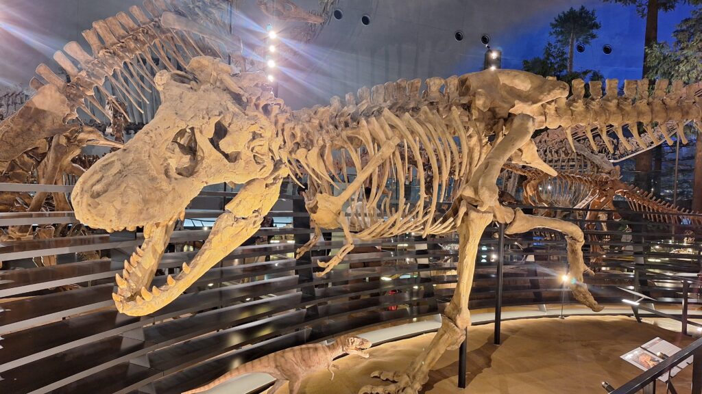 今回の旅行のいちばんの目的地は、子どもたちが楽しみにしていた「福井県立恐竜博物館」。カナダ・中国と並ぶ世界三大恐竜博物館のひとつで、迫力ある恐竜展示が魅力です。