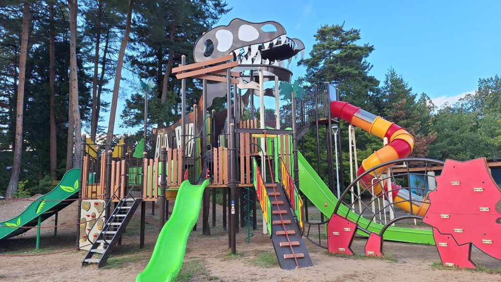 また、敷地内には公園やBBQ、恐竜探検できる「かつやまディノパーク」もあり、博物館だけでなく外でもたっぷり遊べて子どもたちも大満足!
