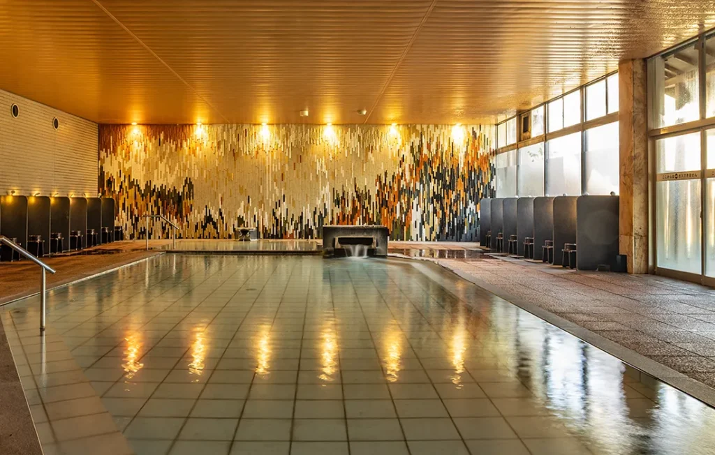 女性大浴場には壁にタイルで模様が施されており落ち着いた雰囲気。
